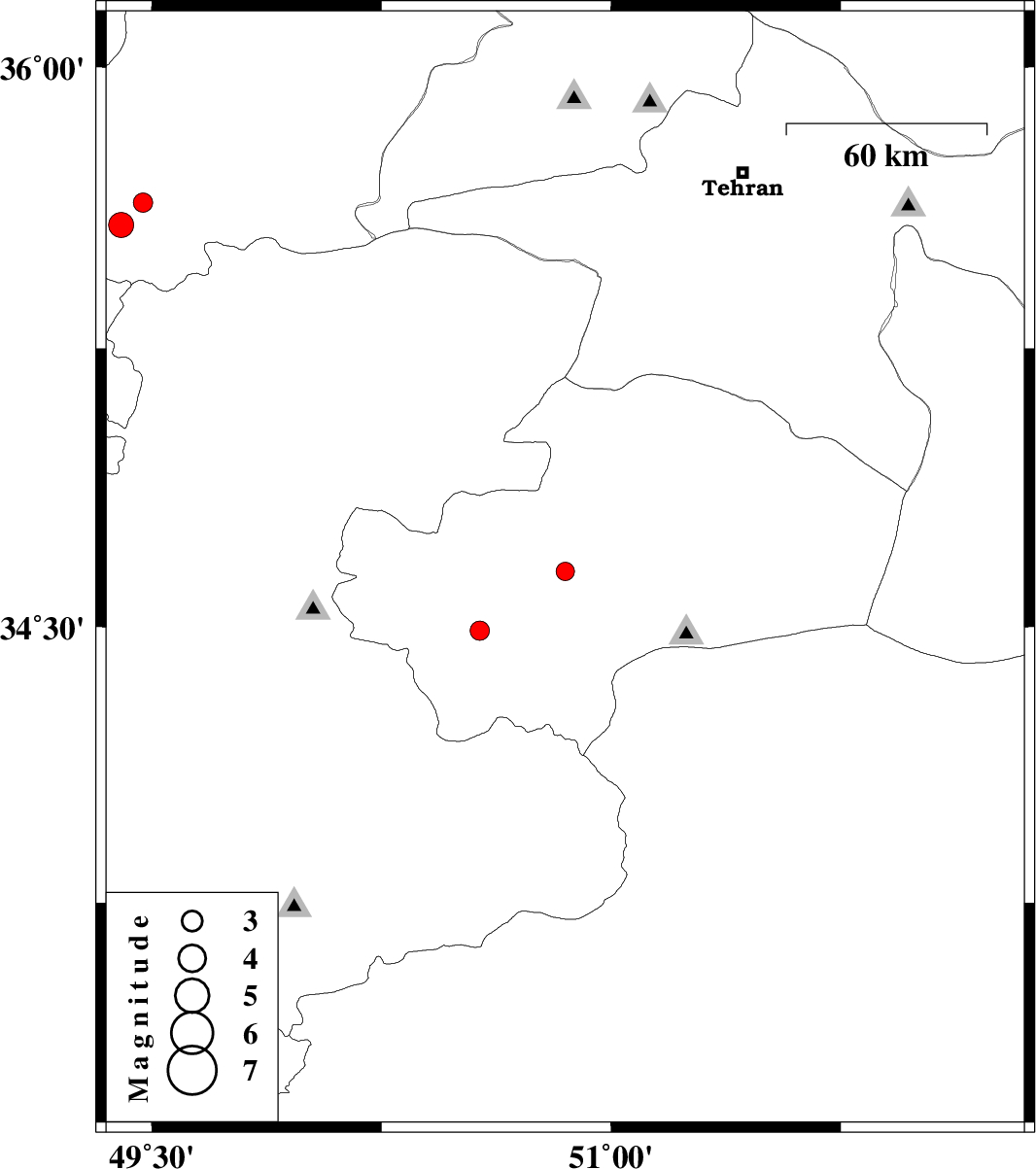 | 2010/03/21 | 01:07:58.9 | 04:37:58.9 | 34.49 | 50.57 | 46 | ML:2.8 | Qom Province, 33 km South-West of Qom |