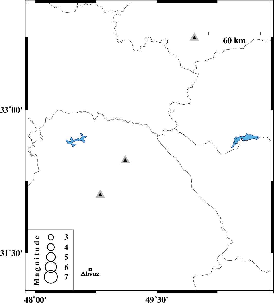 | 2010/04/20 | 04:38:32.8 | 09:08:32.8 | 32.6 | 49.41 | 6 | ML:2.7 | Khoozestan Province, 37 km North-East of Lali |