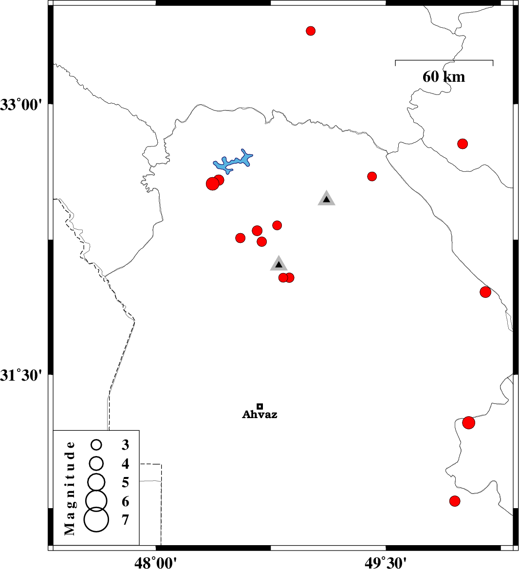 2010/04/23 | 23:25:59.4 | 03:55:59.4 | 32.33 | 48.79 | 14 | ML:2.7 | Khoozestan Province, 33 km North of Shushtar | ||