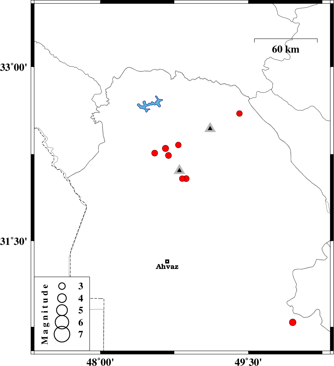| 2010/04/23 | 20:55:29.3 | 01:25:29.3 | 32.04 | 48.83 | 39 | ML:2.7 | Khoozestan Province, 2 km Shushtar | ||