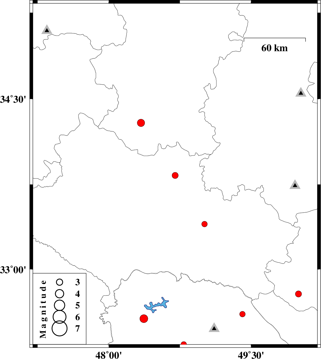 | 2010/04/27 | 08:18:00.2 | 12:48:00.2 | 33.83 | 48.7 | 14 | ML:3 | Lorestan Province, 9 km Borujerd | ||