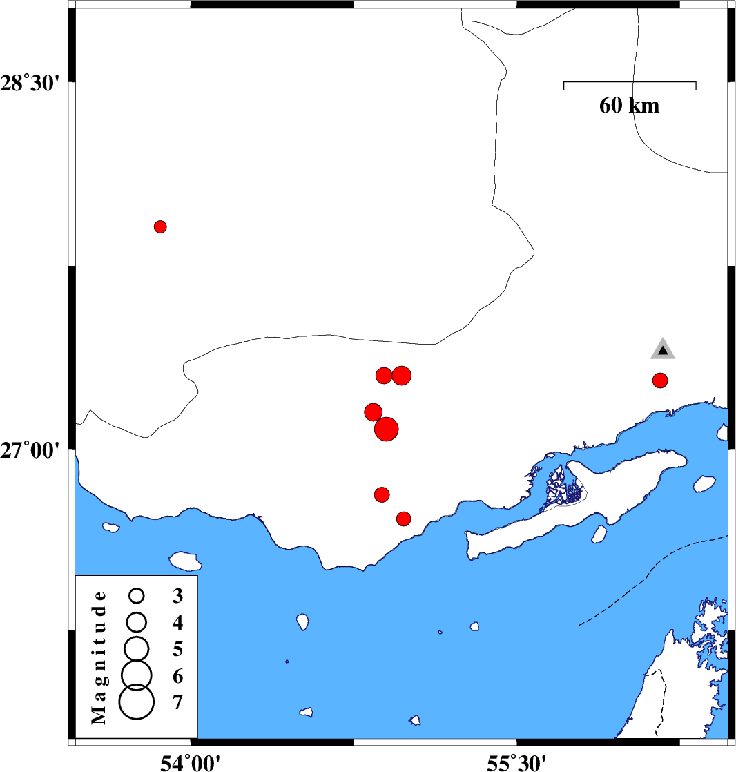 2010/04/28 03:47:25.7 08:17:25.7 26.8154.8818 ML:3.1 Hormozgan Province, 32 km North of Bandar-e lengeh