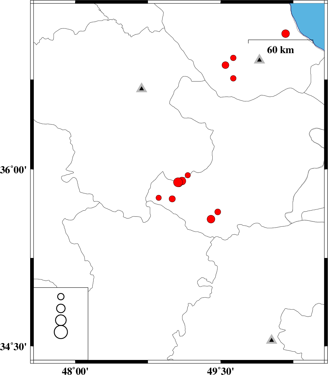 | Prel. Rep. | Date | Time(UTC) | Time(Local) | Lat. | Lon. | Depth | Mag. | Region | Waveform |
