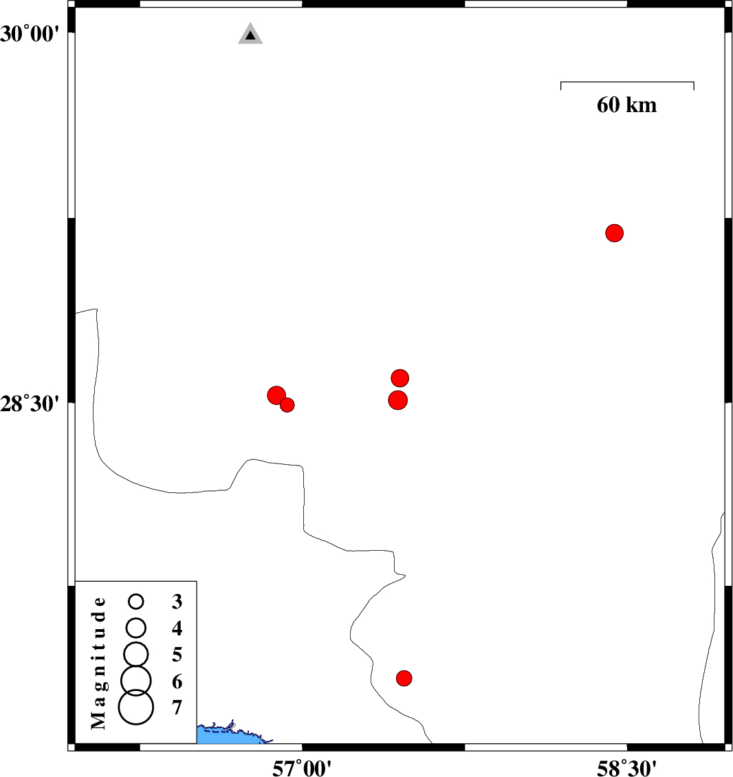 | 2010/04/29 | 21:14:02.2 | 01:44:02.2 | 28.51 | 57.44 | 39 | ML:3.9 | Kerman Province, 34 km South-West of Jiroft | ||