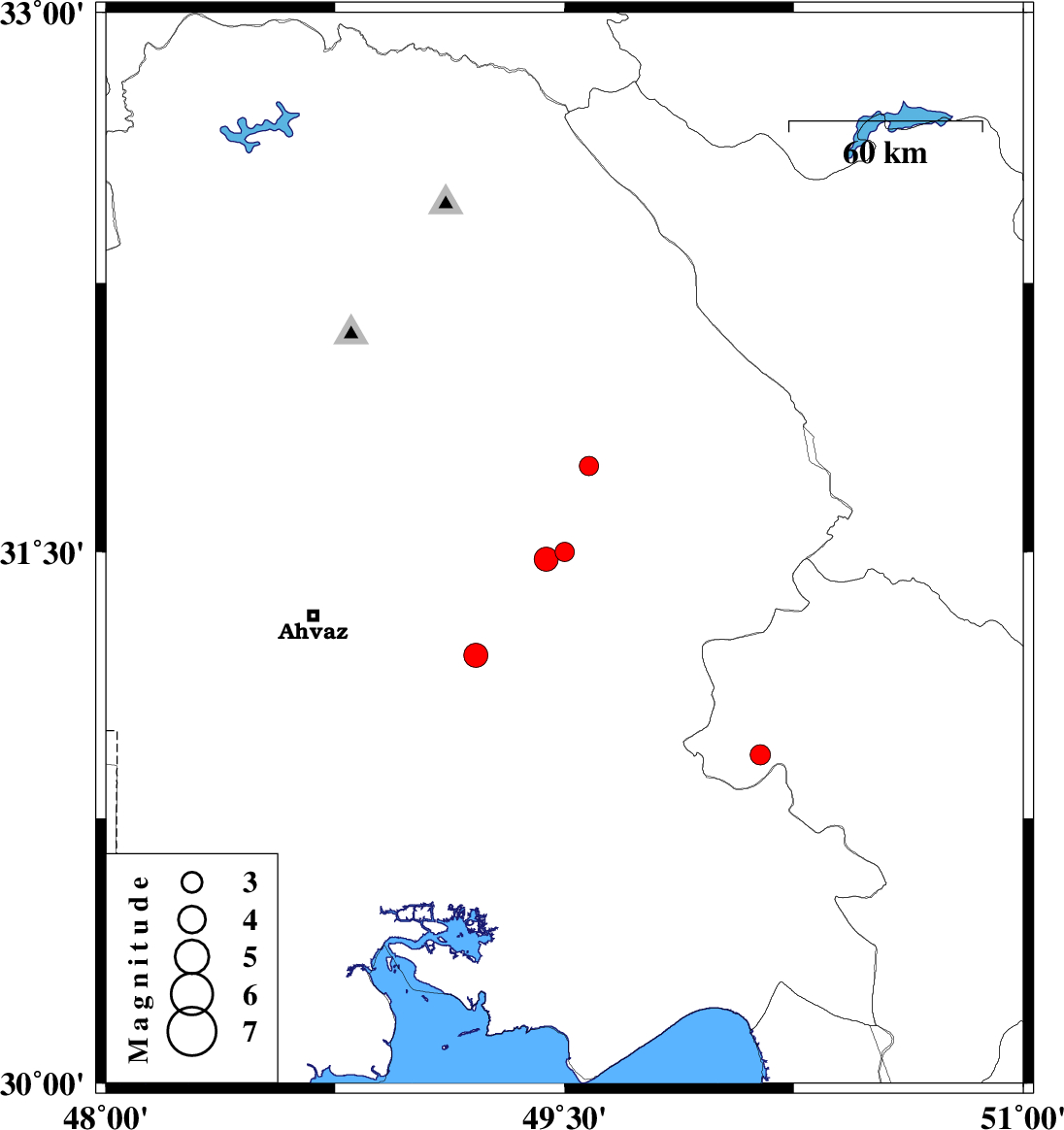 | 2010/04/29 | 23:43:12.2 | 04:13:12.2 | 30.93 | 50.14 | 15 | ML:3 | Kohkiluieh va boyerahmad Province, 38 km North of Behbahan | ||