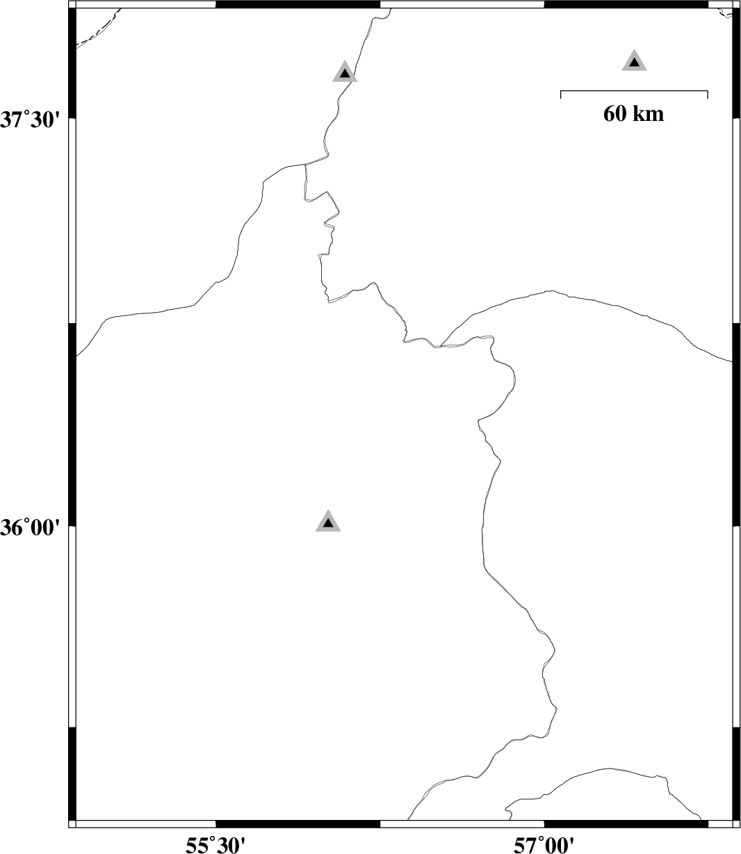 | 2010/05/03 | 02:30:19.4 | 07:00:19.4 | 36.65 | 55.17 | 15 | ML:3.2 | Semnan Province, 41 km South of Ramian | ||