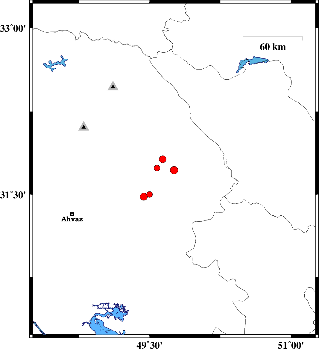2010/05/07 | 09:41:58.3 | 14:11:58.3 | 31.72 | 49.76 | 14 | ML:3.6 | Khoozestan Province, 17 km South-West of Izeh | ||
