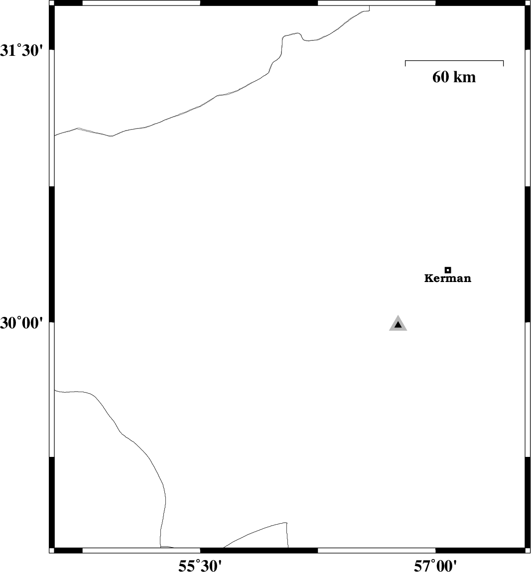 | 2010/05/07 | 19:32:30.2 | 00:02:30.2 | 30.24 | 56.07 | 18 | ML:3 | Kerman Province, 19 km South of Rafsanjan | ||
