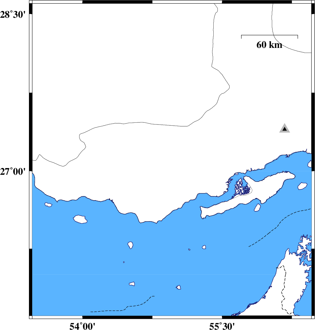 | 2010/05/14 | 00:36:13.4 | 05:06:13.4 | 27.17 | 55.09 | 46 | ML:3.2 | Hormozgan Province, 72 km East of Bastak | ||