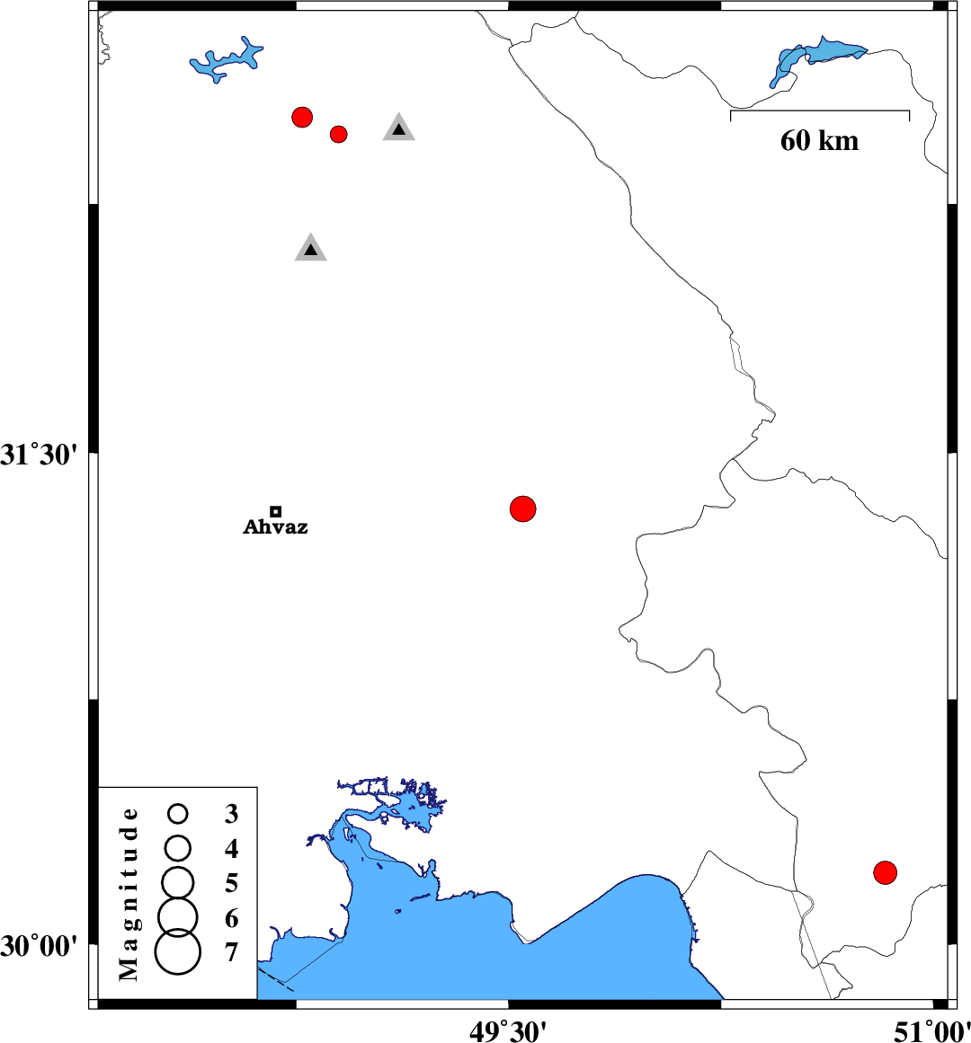 | 2010/05/17 | 12:37:19.5 | 17:07:19.5 | 31.33 | 49.55 | 38 | ML:4.1 | Khoozestan Province, 8 km Ramhormoz | ||
