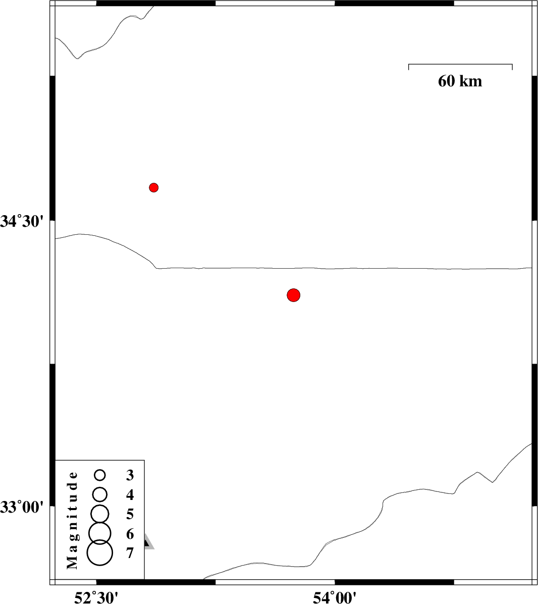 | 2010/05/18 | 09:14:11.4 | 13:44:11.4 | 34.11 | 53.74 | 14 | ML:3.7 | Esfahan Province, 165 km South-East of Semnan | ||