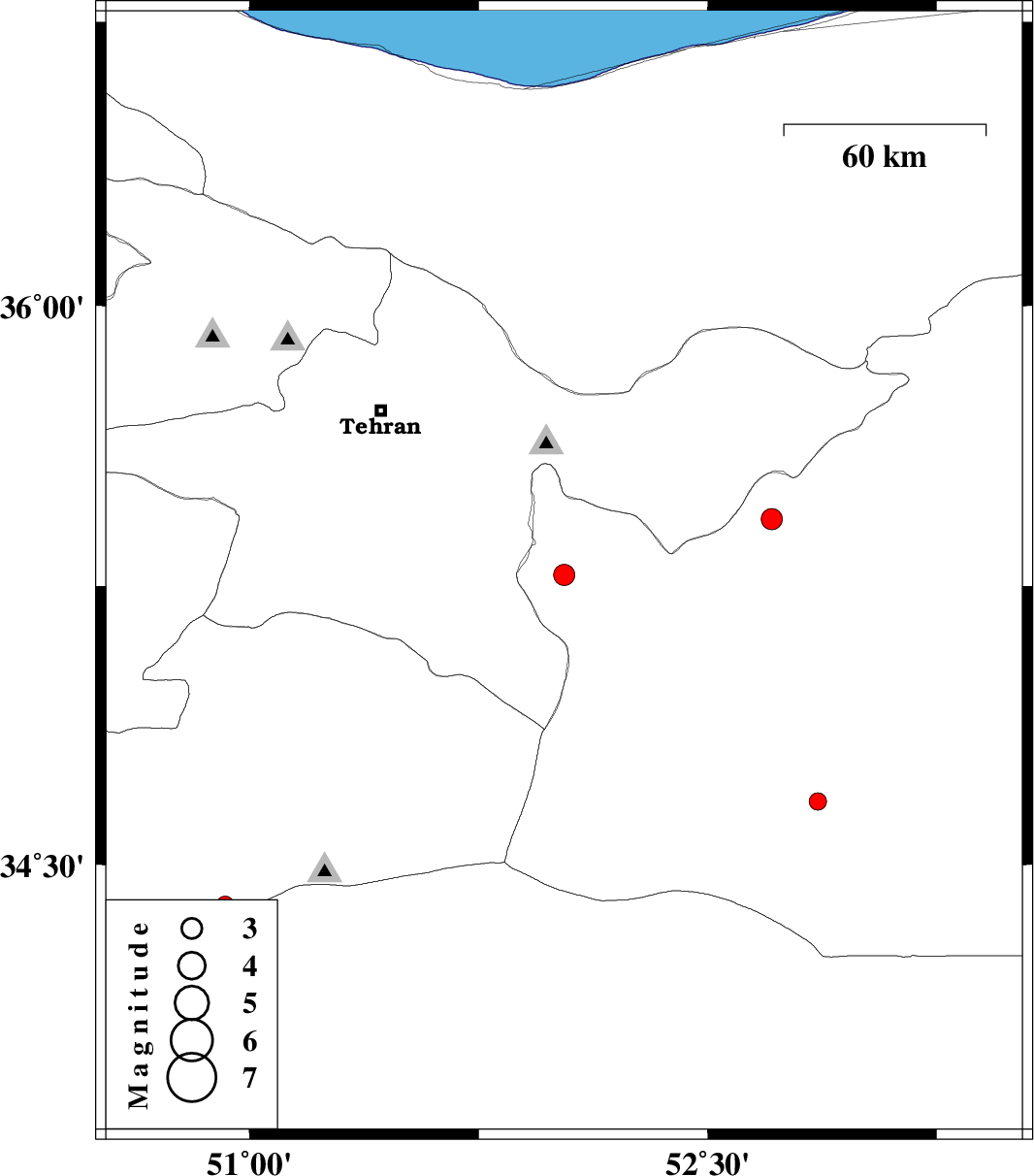 | 2010/05/19 | 00:59:55.7 | 05:29:55.7 | 35.28 | 52.03 | 35 | ML:3.1 | Semnan Province, 29 km West of Garmsar | ||