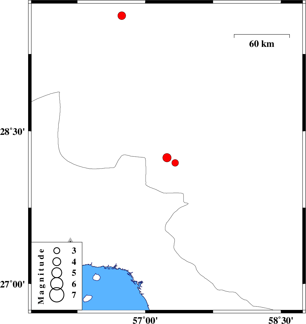 | 2010/05/14 | 11:21:23.7 | 15:51:23.7 | 29.62 | 56.74 | 5 | ML:4 | Kerman Province, 37 km South-East of Bardsir |