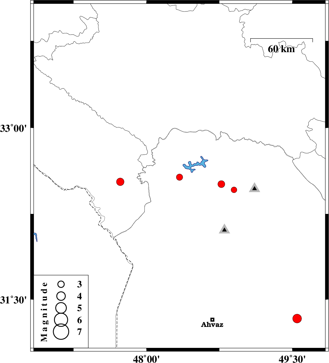 | 2010/05/17 | 18:42:14.3 | 23:12:14.3 | 32.51 | 48.77 | 14 | ML:3.2 | Khoozestan Province, 34 km North-West of Lali | ||