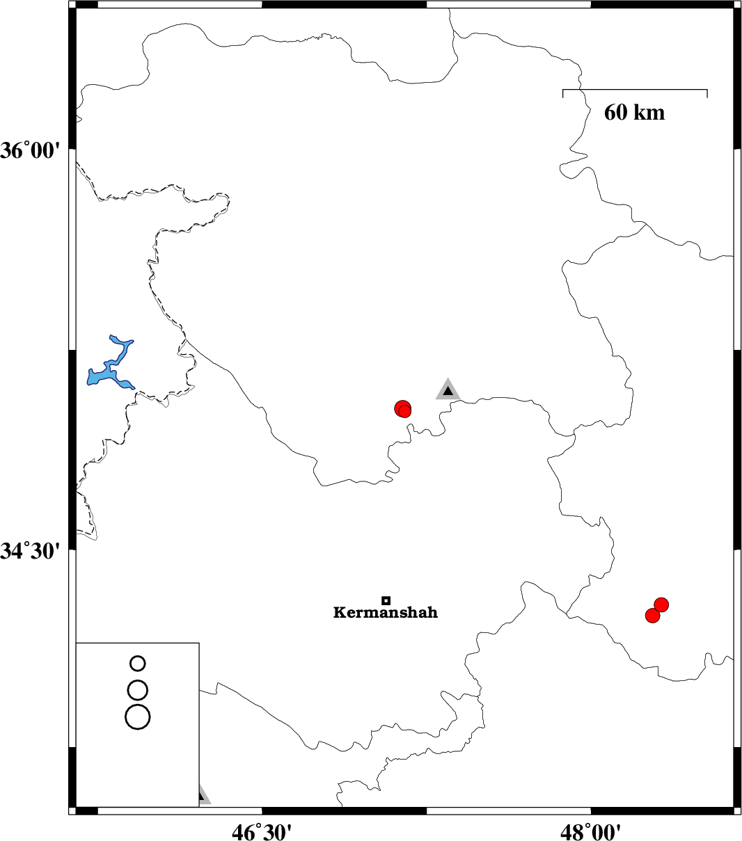 | 2010/05/24 | 12:37:21.5 | 17:07:21.5 | 35.03 | 47.14 | 14 | ML:3.4 | Kordestan Province, 29 km North-East of Kamyaran | ||