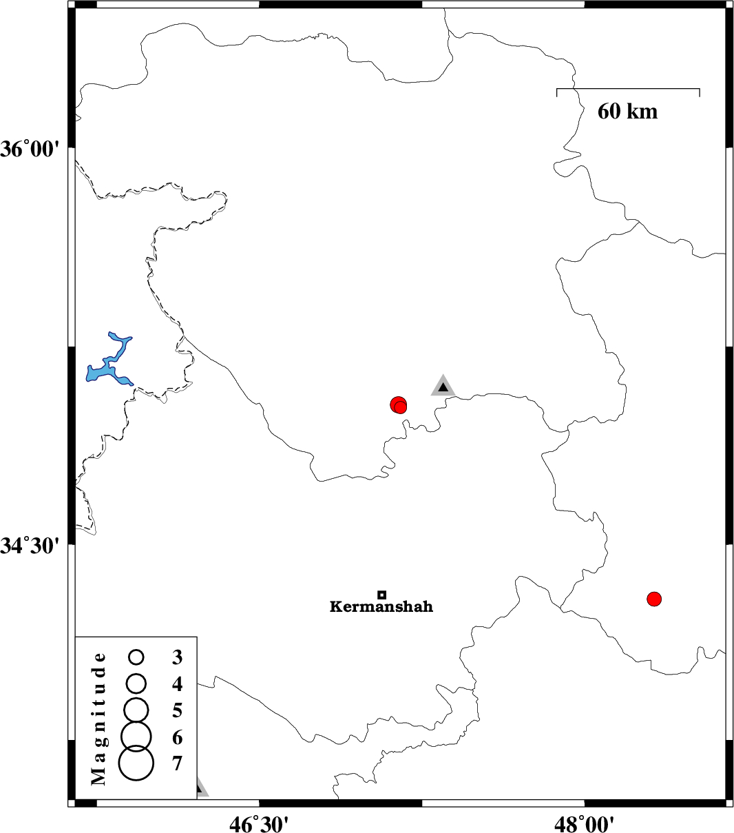 | 2010/05/23 | 06:47:51.2 | 11:17:51.2 | 34.29 | 48.32 | 15 | ML:2.9 | Hamedan Province, 12 km North of Nahavand |