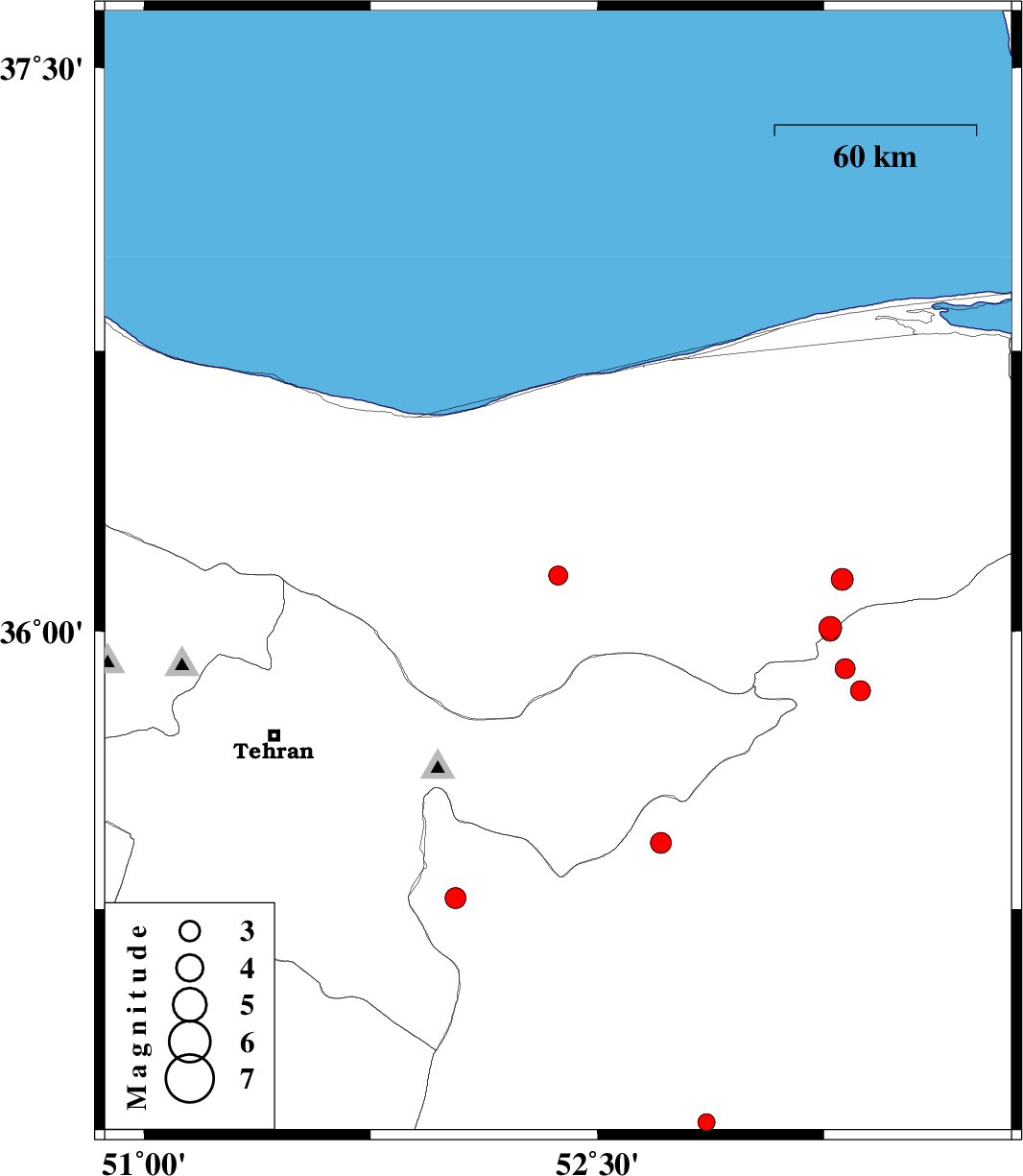 | 2010/05/27 | 04:02:11.3 | 08:32:11.3 | 36.01 | 53.27 | 7 | ML:3.4 | Mazandaran Province, 22 km South-East of Pol-E-Sefid | ||
