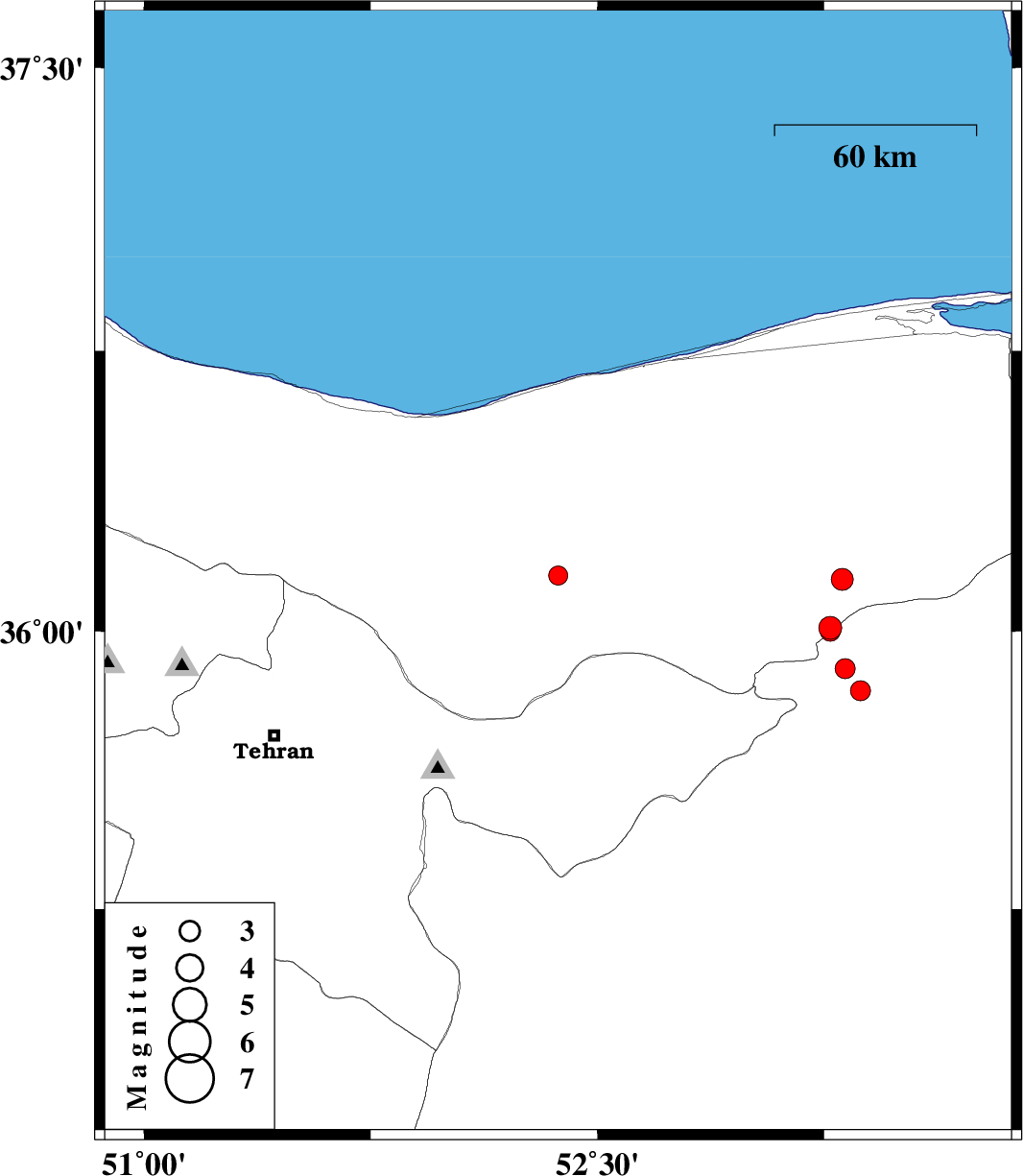 | 2010/05/27 | 04:02:11.3 | 08:32:11.3 | 36.01 | 53.27 | 7 | ML:3.4 | Mazandaran Province, 22 km South-East of Pol-E-Sefid | ||