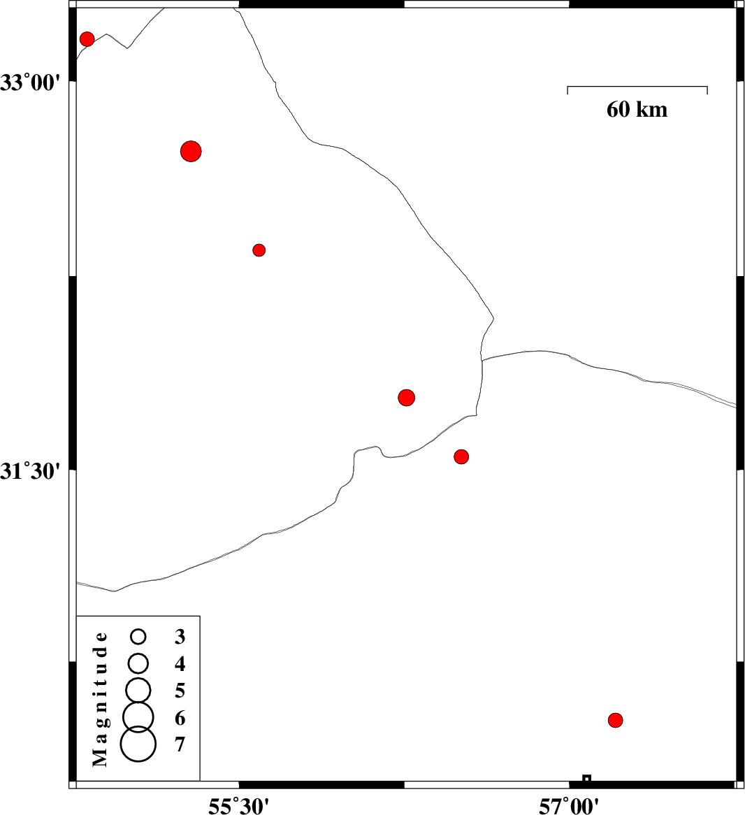 2010/06/01 | 09:03:00.9 | 13:33:00.9 | 31.78 | 56.26 | 14 | ML:3.4 | Yazd Province, 84 km North-East of Bafq | ||