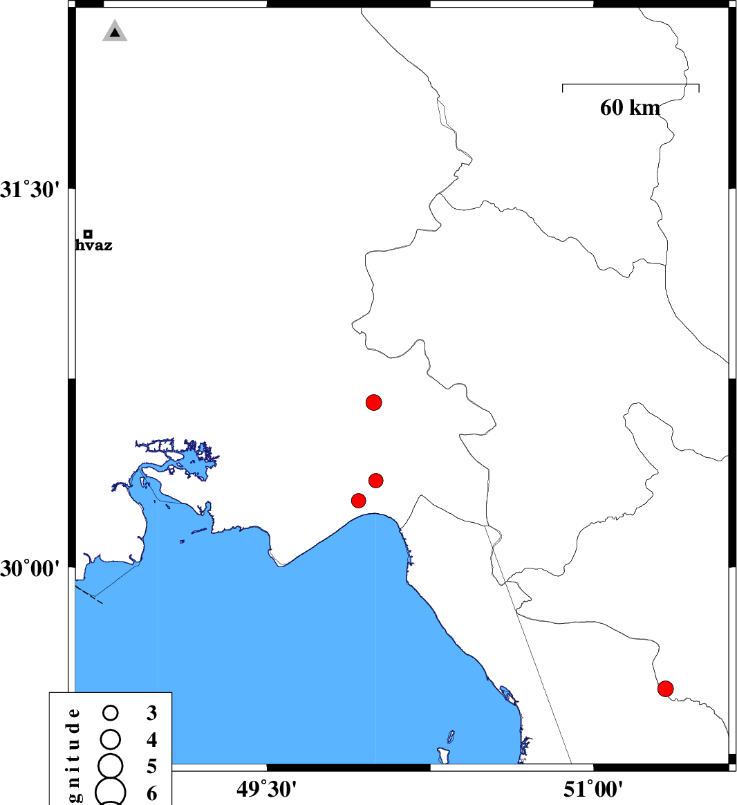 2010/06/02 18:56:19.8 23:26:19.8 30.6350.0433 ML:3 Khoozestan Province, 20 km West of Behbahan