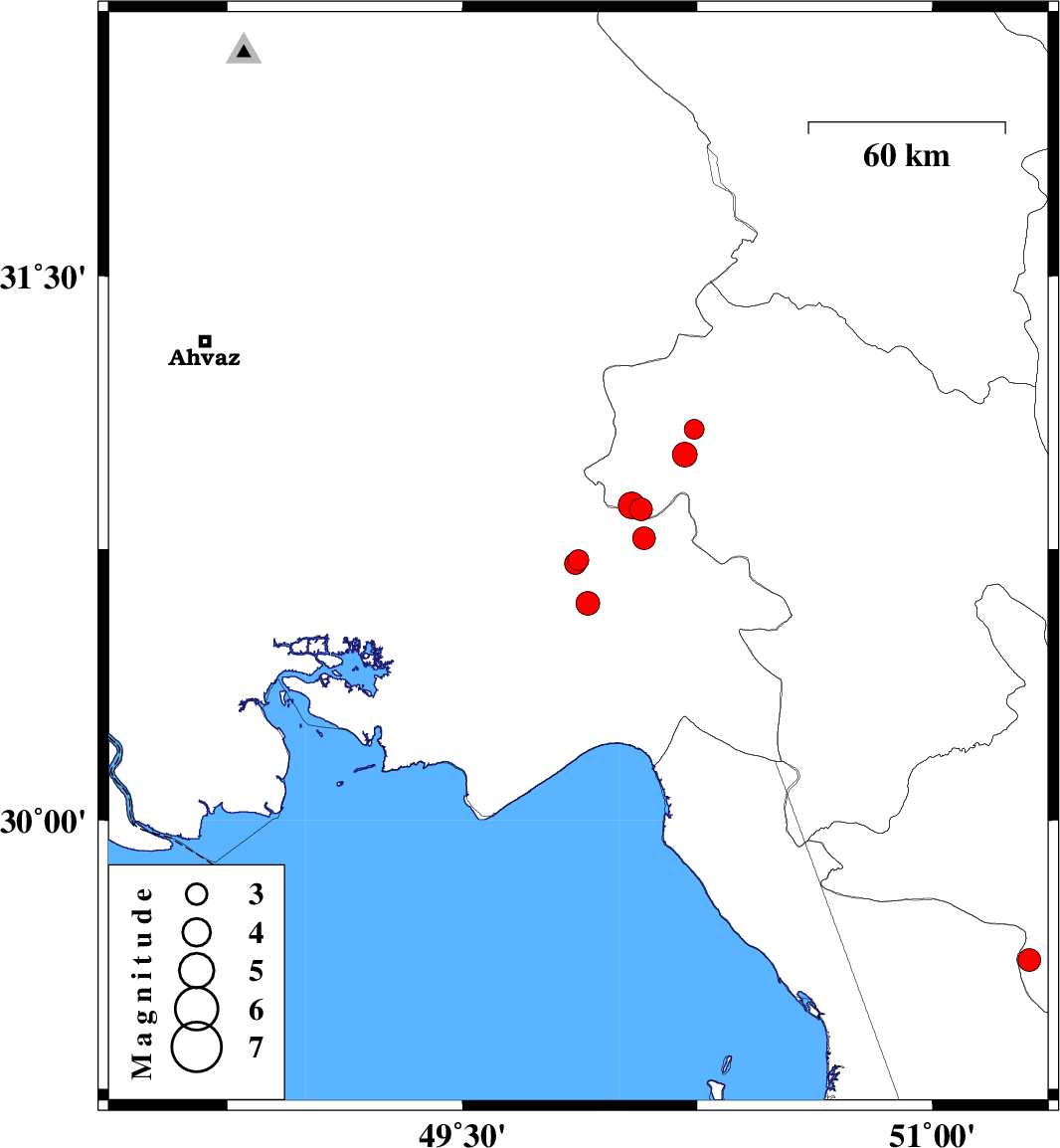 2010/06/07 | 02:28:10.2 | 06:58:10.2 | 30.87 | 50.04 | 26 | ML:3.8 | Kohkiluieh va boyerahmad Province, 34 km North-East of Omidiyeh | ||