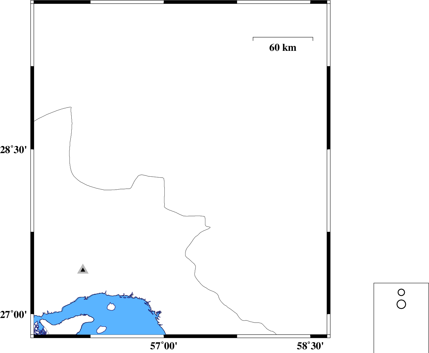 | 2010/06/14 | 04:13:45.8 | 08:43:45.8 | 28.33 | 57.12 | 15 | ML:4 | Kerman Province, 70 km North-West of Kahnuj |