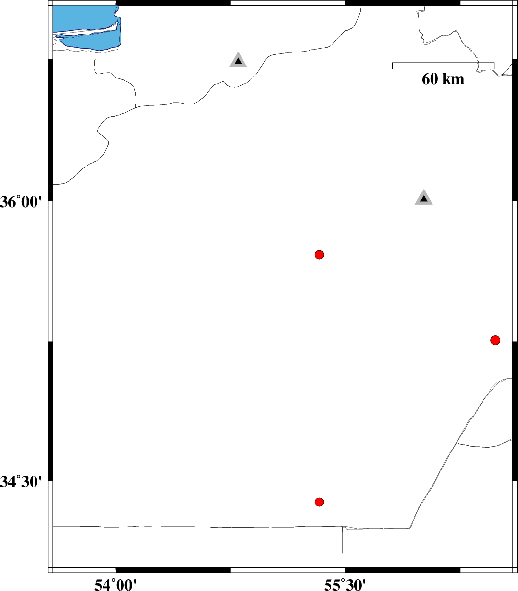| 2010/06/15 | 10:44:56.4 | 15:14:56.4 | 35.53 | 55.09 | 14 | ML:2.5 | Semnan Province, 100 km South-East of Shahrud | ||