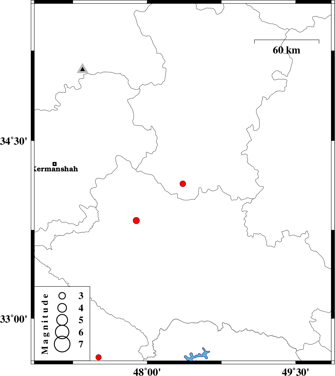 | 2010/06/14 | 20:03:17.3 | 00:33:17.3 | 33.83 | 47.89 | 15 | ML:2.9 | Lorestan Province, 29 km South of Nurabad | ||