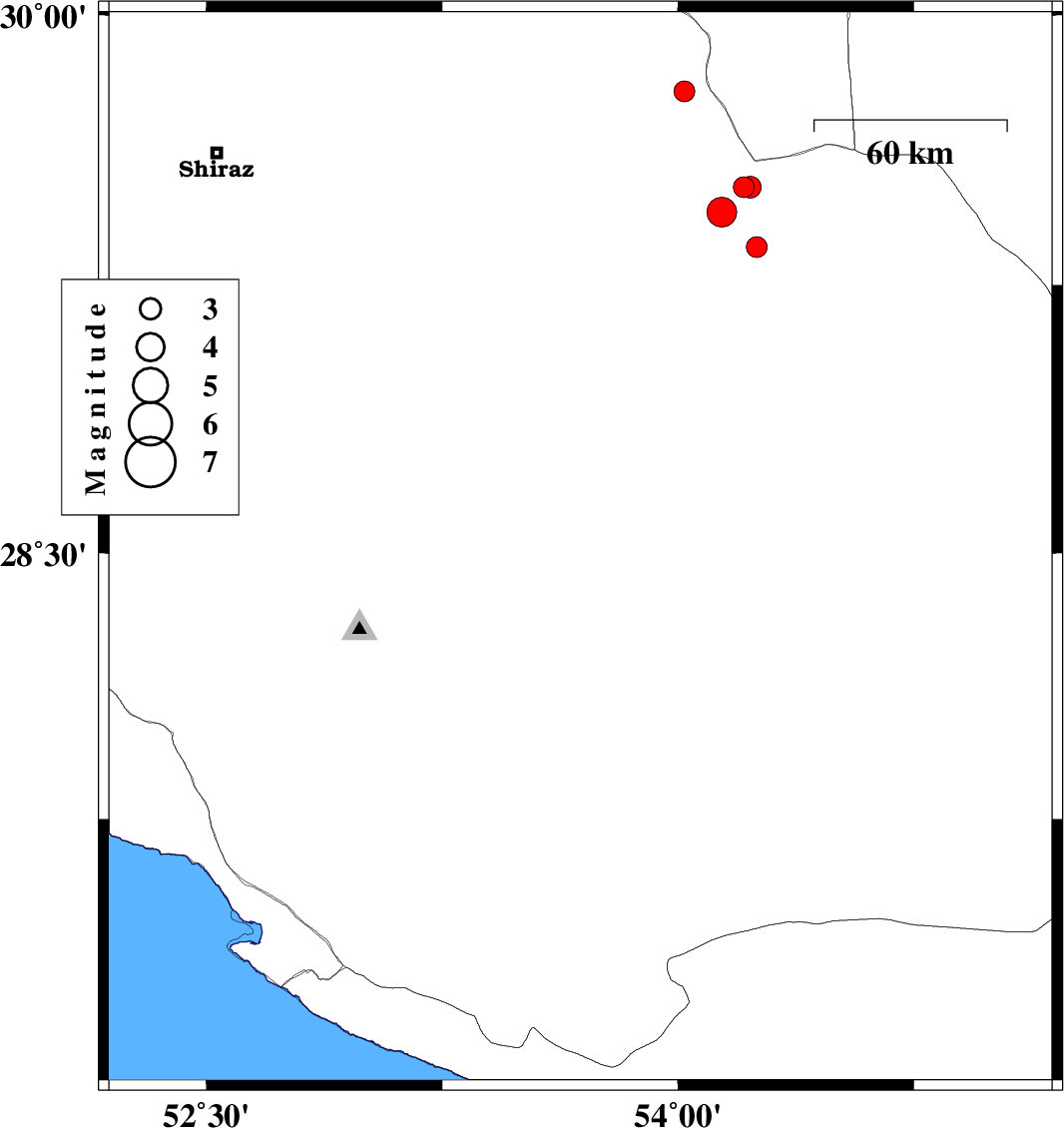 | 2010/06/20 | 19:11:50.8 | 23:41:50.8 | 27.94 | 54.38 | 15 | ML:3.1 | Fars Province, 29 km North of Lar | ||