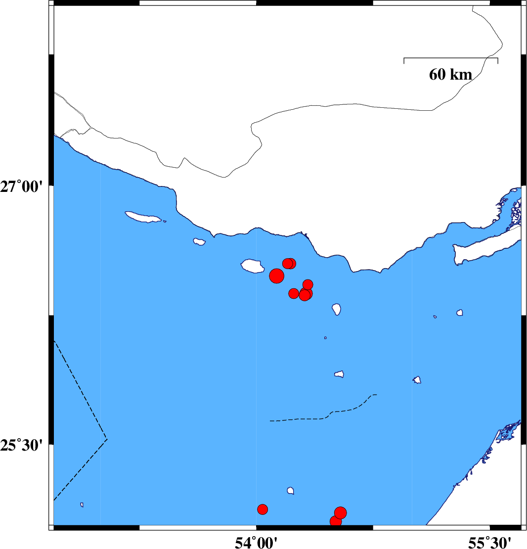 Persian Gulf, 65 km West of Bandar-e lengeh | |