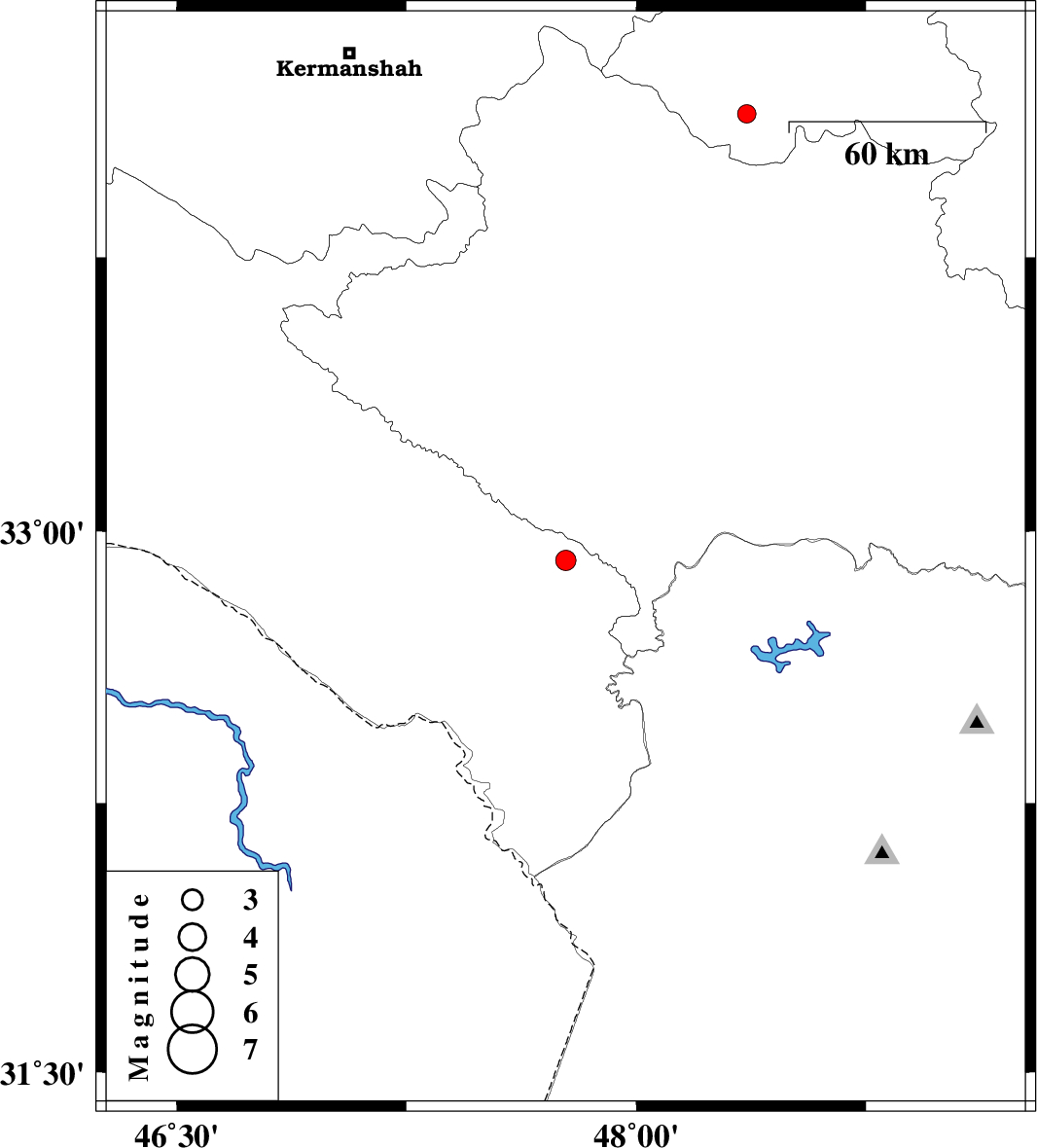 | 2010/06/25 | 08:11:24.1 | 12:41:24.1 | 32.92 | 47.77 | 15 | ML:3 | Ilam Province, 26 km South of Pol-e dokhtar | ||