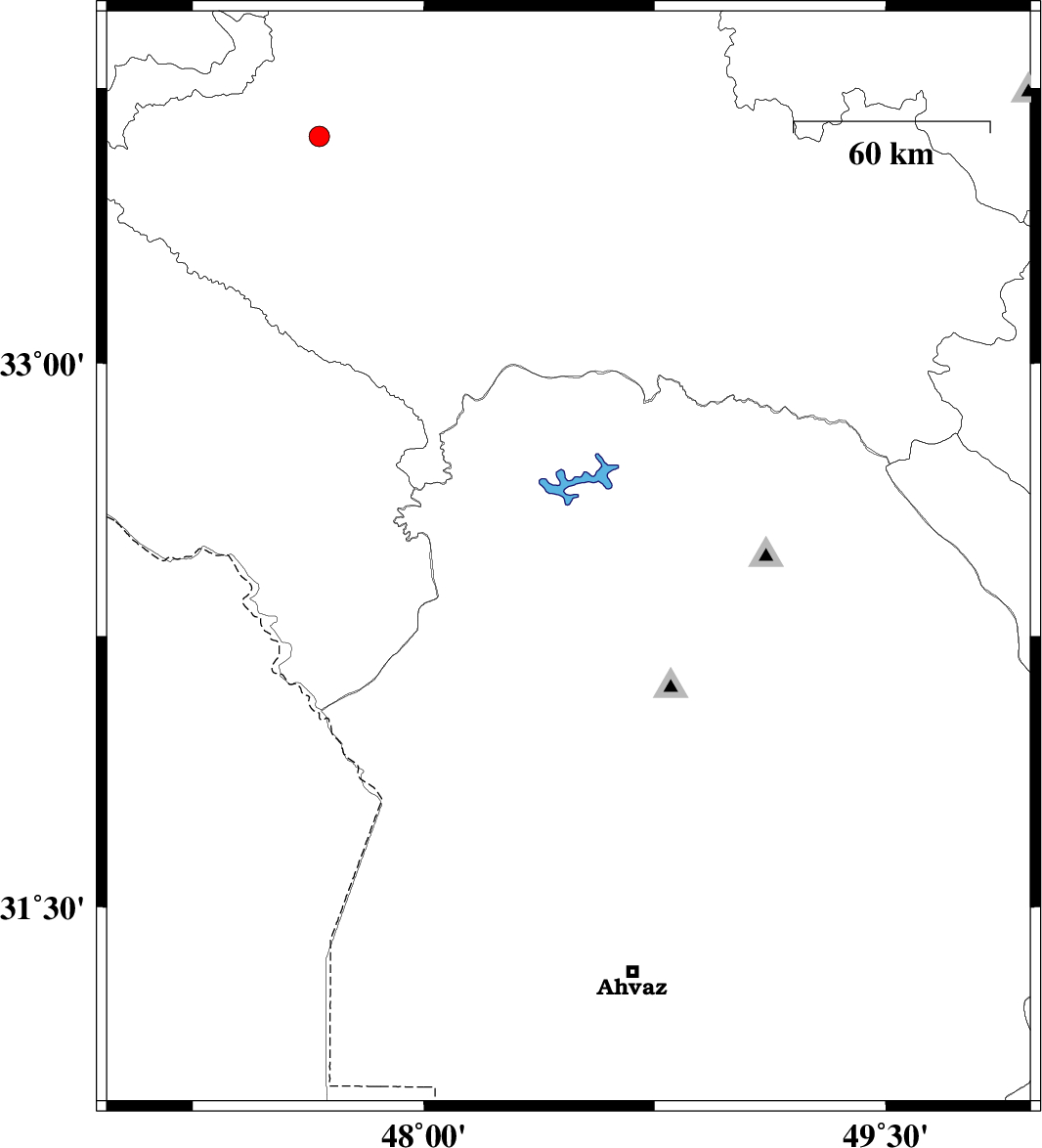 | 2010/06/26 | 08:37:20.5 | 13:07:20.5 | 32.46 | 48.47 | 14 | ML:2.6 | Khoozestan Province, 11 km East of Andimeshk | ||