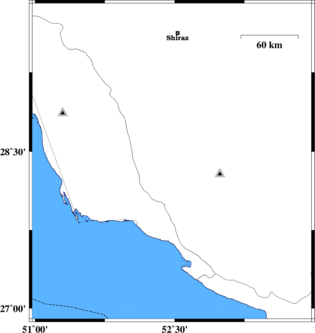 | 2010/06/21 | 23:46:46.1 | 04:16:46.1 | 28.51 | 53.69 | 28 | ML:3 | Fars Province, 13 km East of Jahrom |