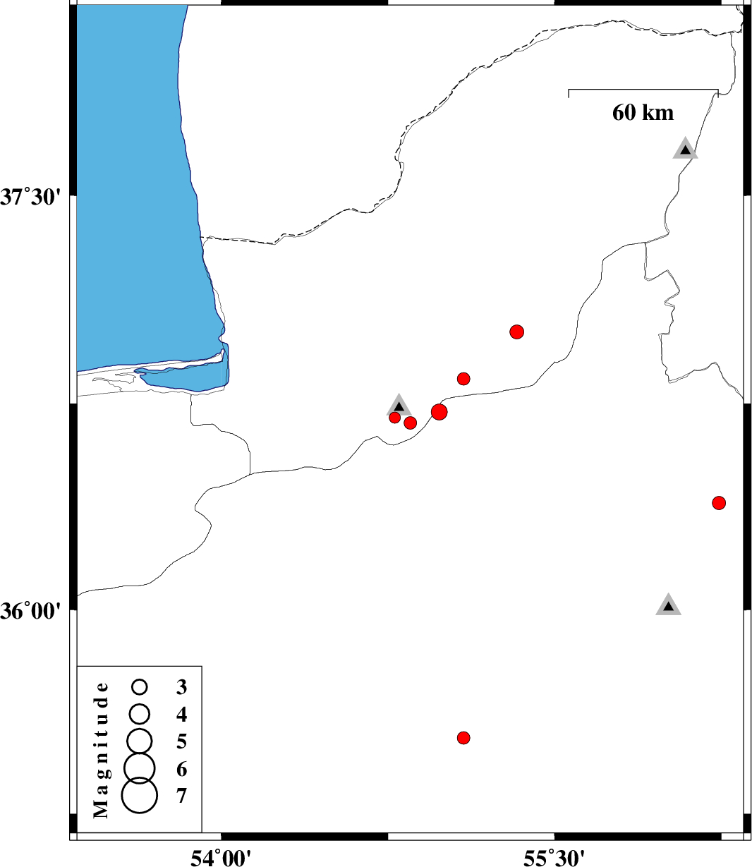 2010/06/13 13:22:28.8 17:52:28.8 36.8455.0914 ML:2.6 Golestan Province, 20 km South of Ramian