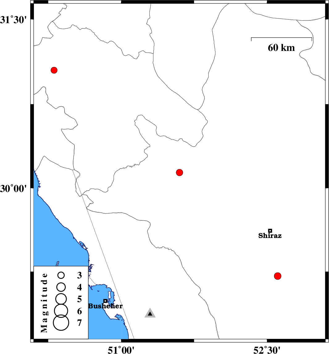 | 2010/07/09 | 18:16:25.9 | 22:46:25.9 | 30.14 | 51.6 | 14 | ML:3.1 | Fars Province, 8 km Nurabad | ||