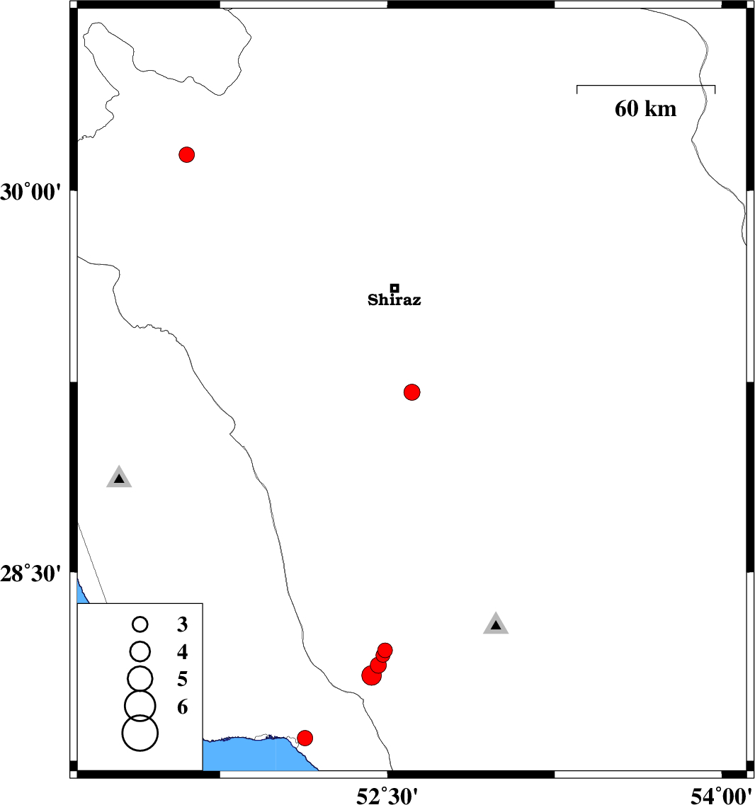 2010/07/03 | 08:50:40.3 | 13:20:40.3 | 27.84 | 52.13 | 14 | ML:3.1 | Bushehr Province, 7 km Bandar-e kangan | ||