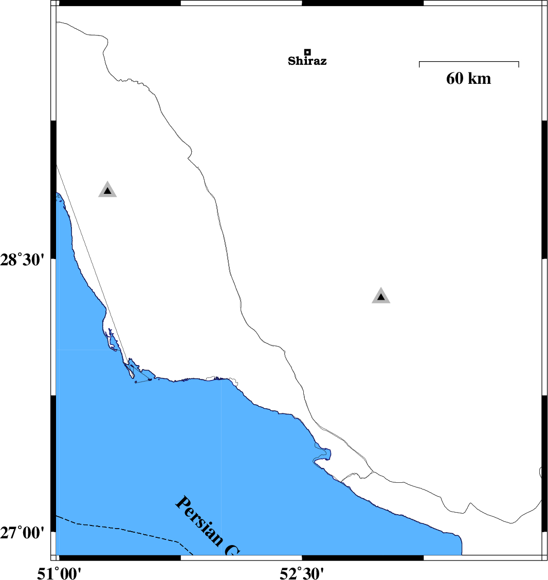 2010/07/13 | 00:15:11.6 | 04:45:11.6 | 28.37 | 52.48 | 15 | ML:2.8 | Fars Province, 52 km South-West of Firuz Abad | ||