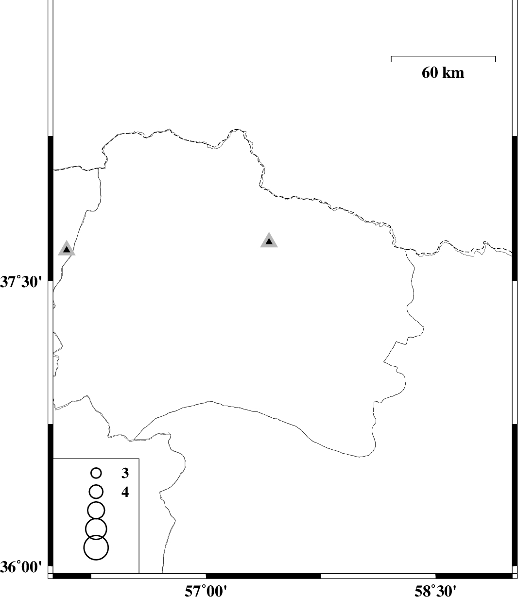 | 2010/07/14 | 03:40:02.2 | 08:10:02.2 | 37.46 | 57.5 | 18 | ML:2.9 | Khorasan(north) Province, 15 km East of Bojnurd |