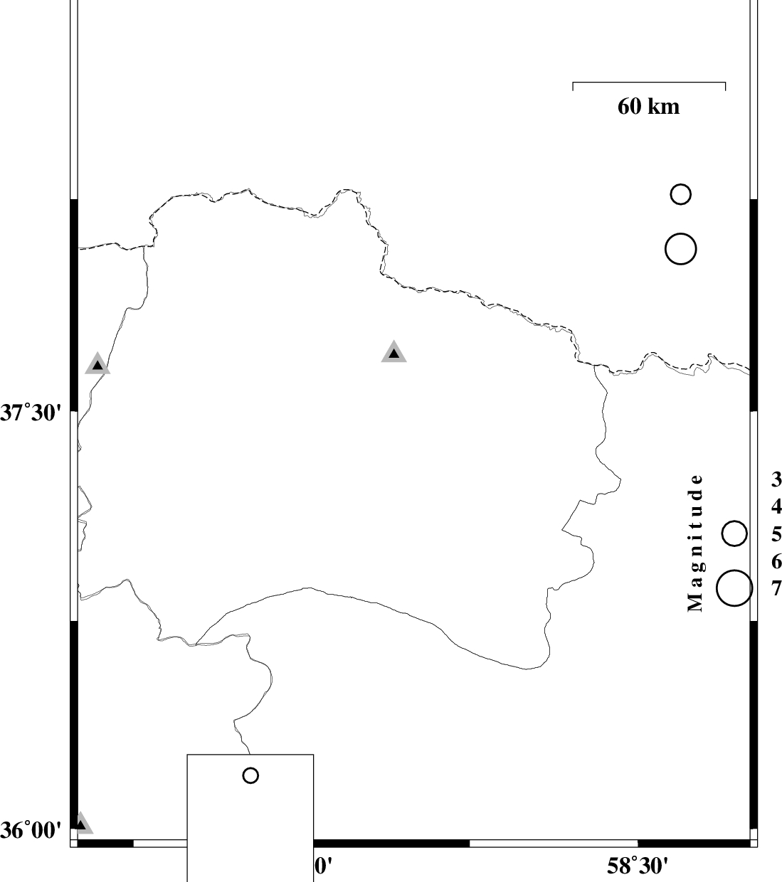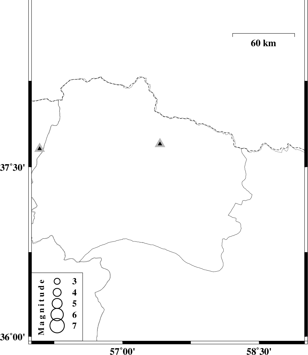 | 2010/07/14 | 03:40:02.2 | 08:10:02.2 | 37.46 | 57.5 | 18 | ML:2.9 | Khorasan(north) Province, 15 km East of Bojnurd |
