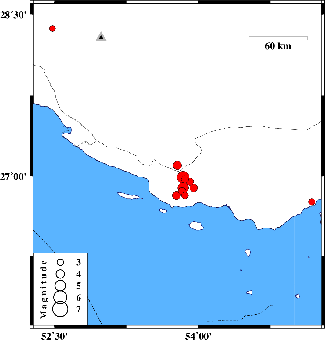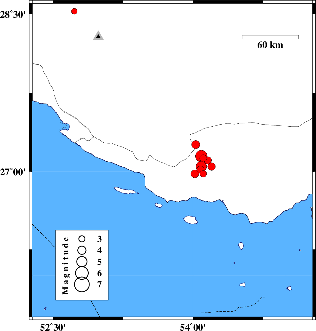 2010/07/20 20:24:52.4 00:54:52.4 26.8953.9518 ML:3.7 Hormozgan Province, 53 km South-West of Bastak