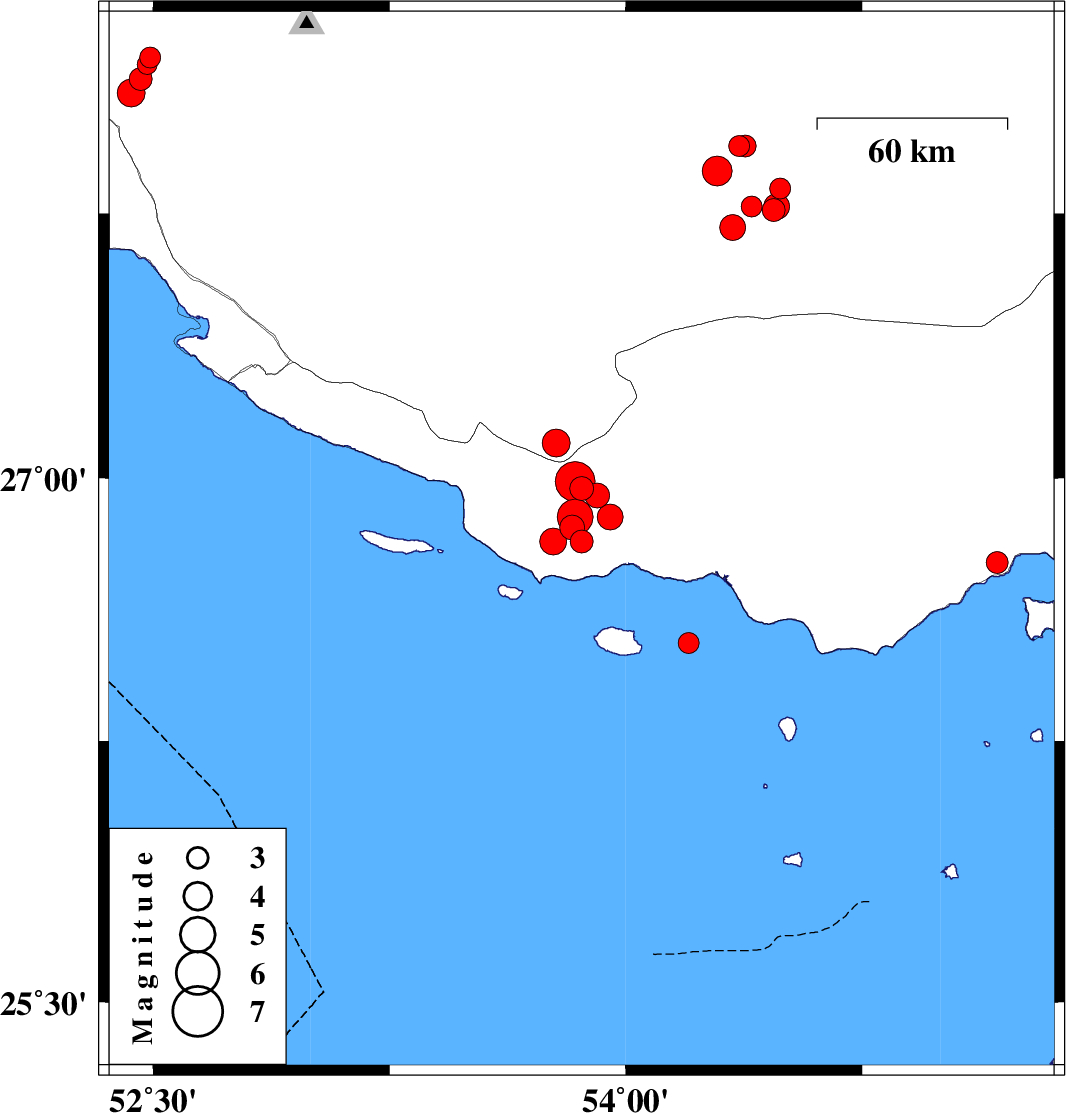 2010/07/20 20:24:52.4 00:54:52.4 26.8953.9518 ML:3.7 Hormozgan Province, 53 km South-West of Bastak