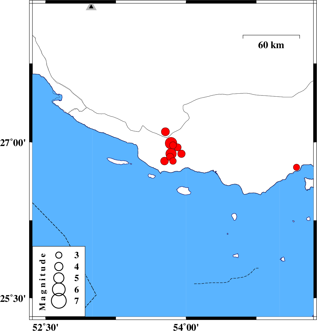 2010/07/20 20:24:52.4 00:54:52.4 26.8953.9518 ML:3.7 Hormozgan Province, 53 km South-West of Bastak