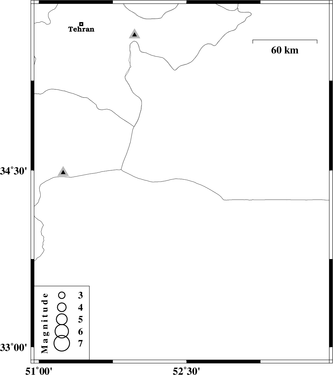 | 2010/07/15 | 21:07:57.4 | 01:37:57.4 | 34.39 | 52.45 | 14 | ML:2.5 | Esfahan Province, 92 km South-East of Garmsar |