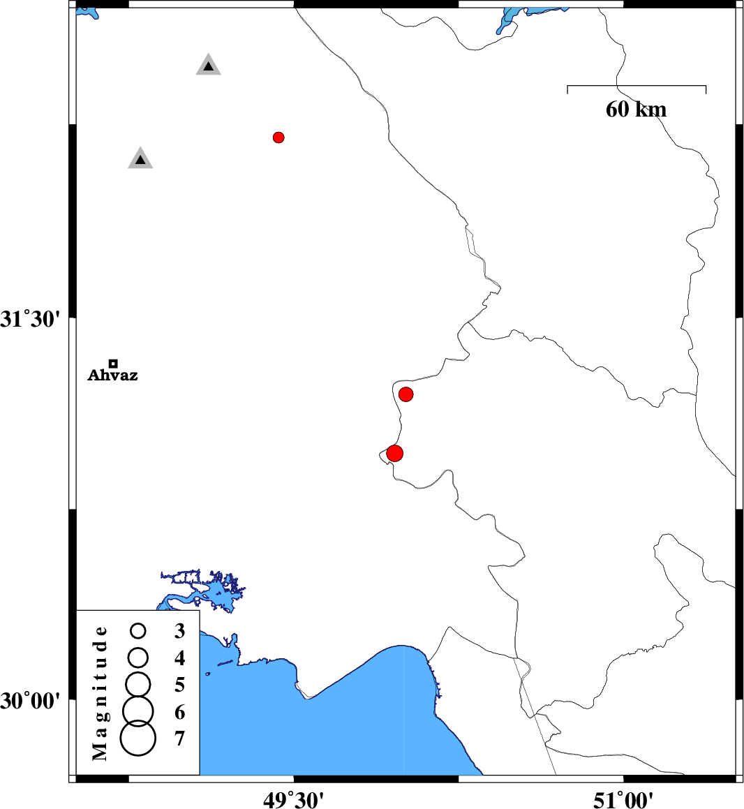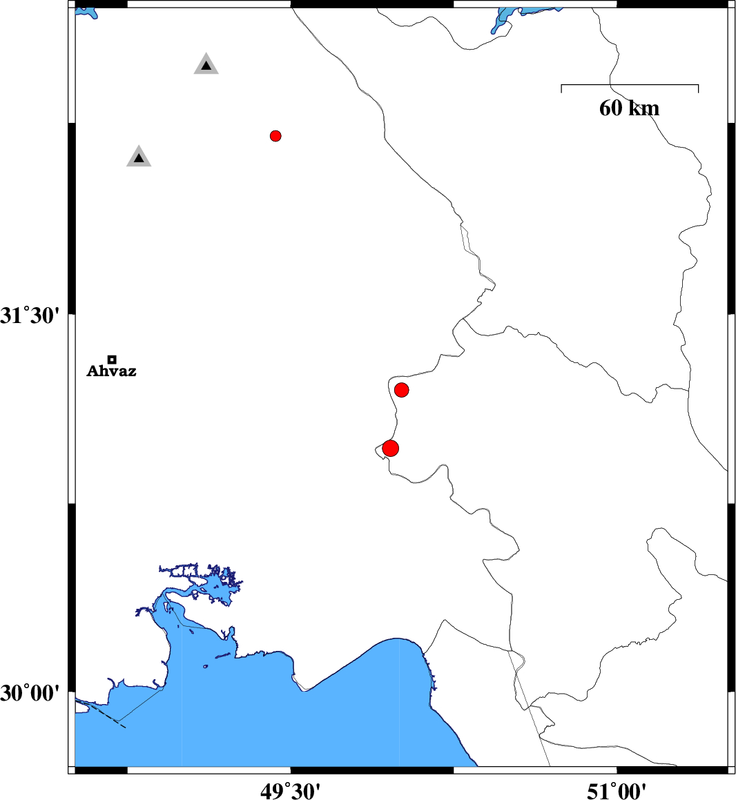 | 2010/07/16 | 14:52:31.9 | 19:22:31.9 | 30.97 | 49.96 | 18 | ML:3.4 | Kohkiluieh va boyerahmad Province, 33 km North-East of Omidiyeh | ||