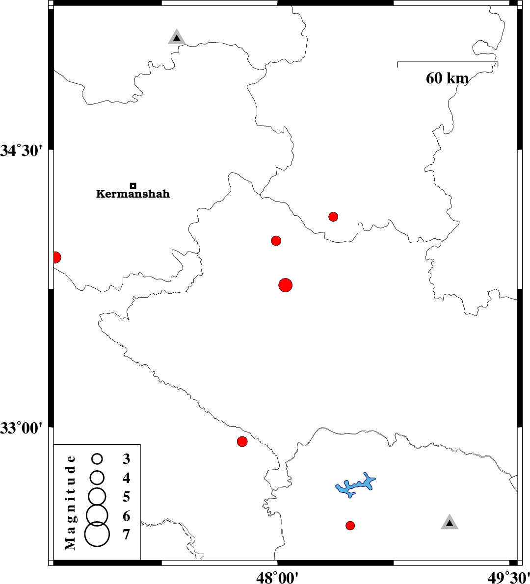 | 2010/07/02 | 04:24:38.2 | 08:54:38.2 | 33.92 | 46.56 | 15 | ML:3.4 | Kermanshah Province, 16 km North of Sar Ableh | ||