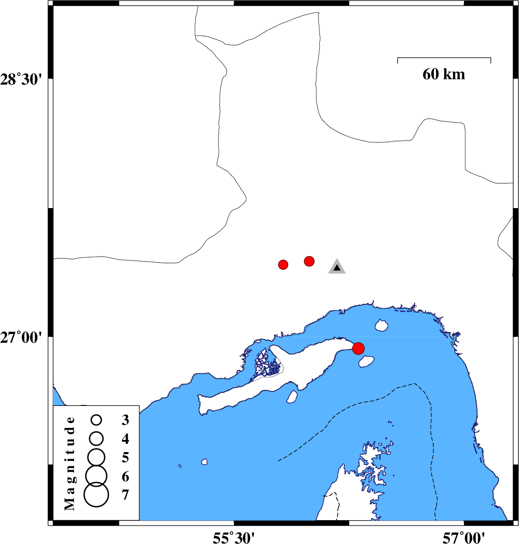 | 2010/07/14 | 14:12:49.4 | 18:42:49.4 | 26.93 | 56.31 | 8 | ML:3.5 | Persian Gulf, 5 km Qeshm |