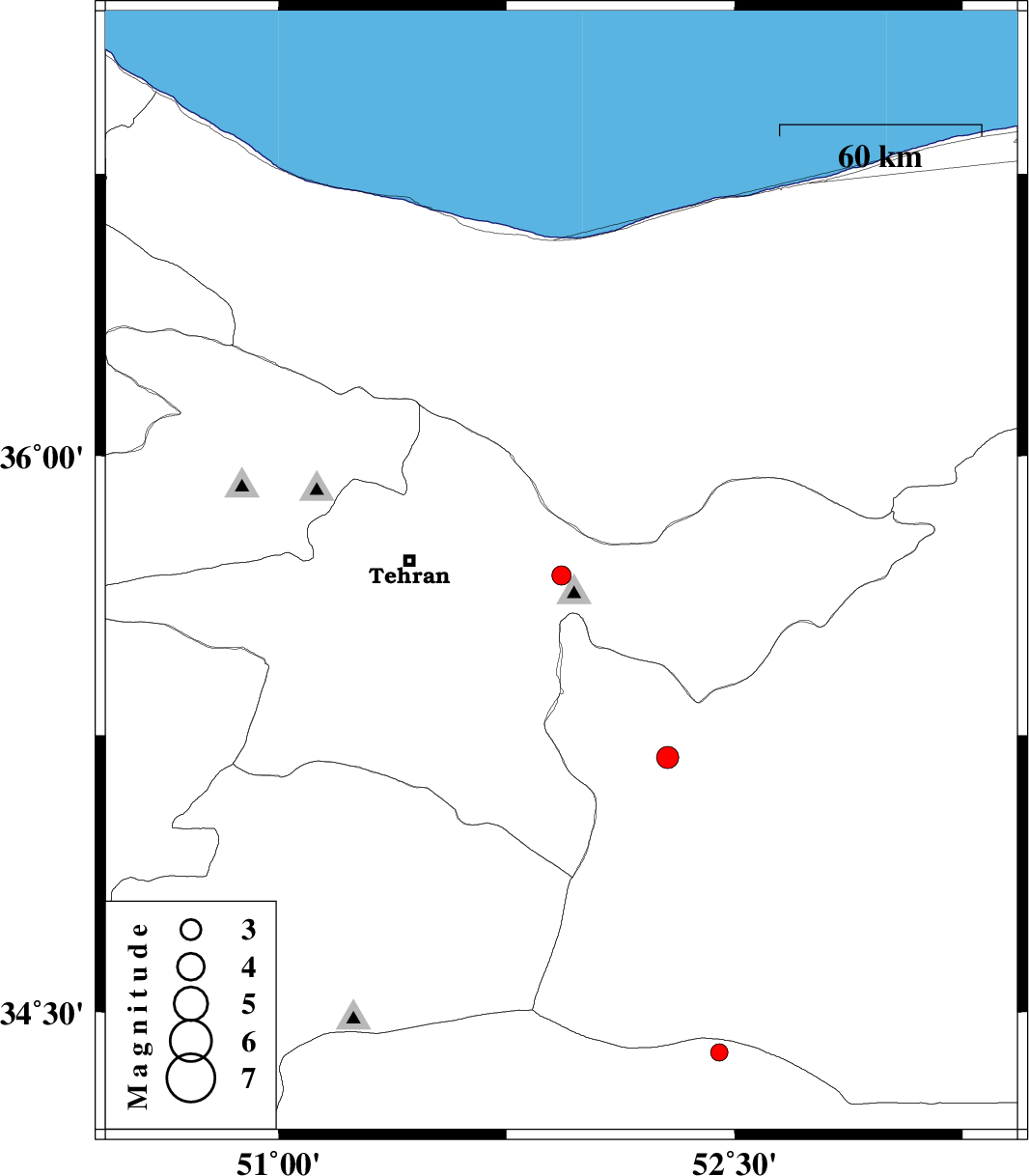 | 2010/07/16 | 03:41:47.9 | 08:11:47.9 | 35.19 | 52.28 | 46 | ML:3.3 | Semnan Province, 6 km Garmsar | ||