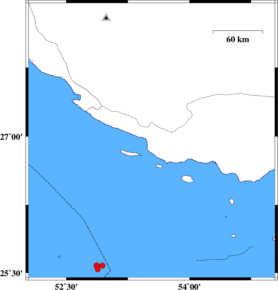Persian Gulf, 62 km South-East of Lamerd | |
