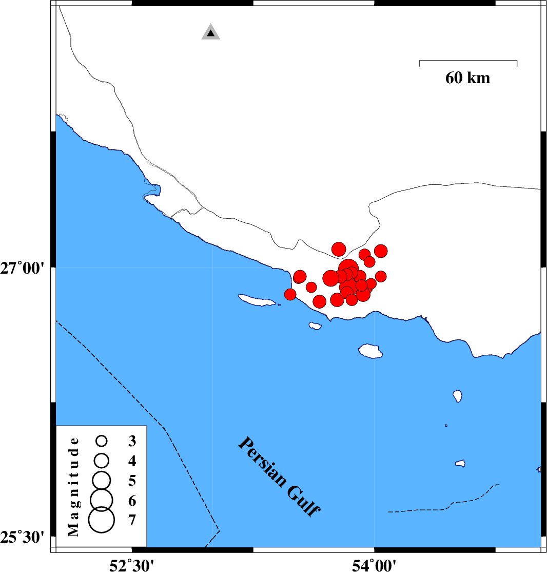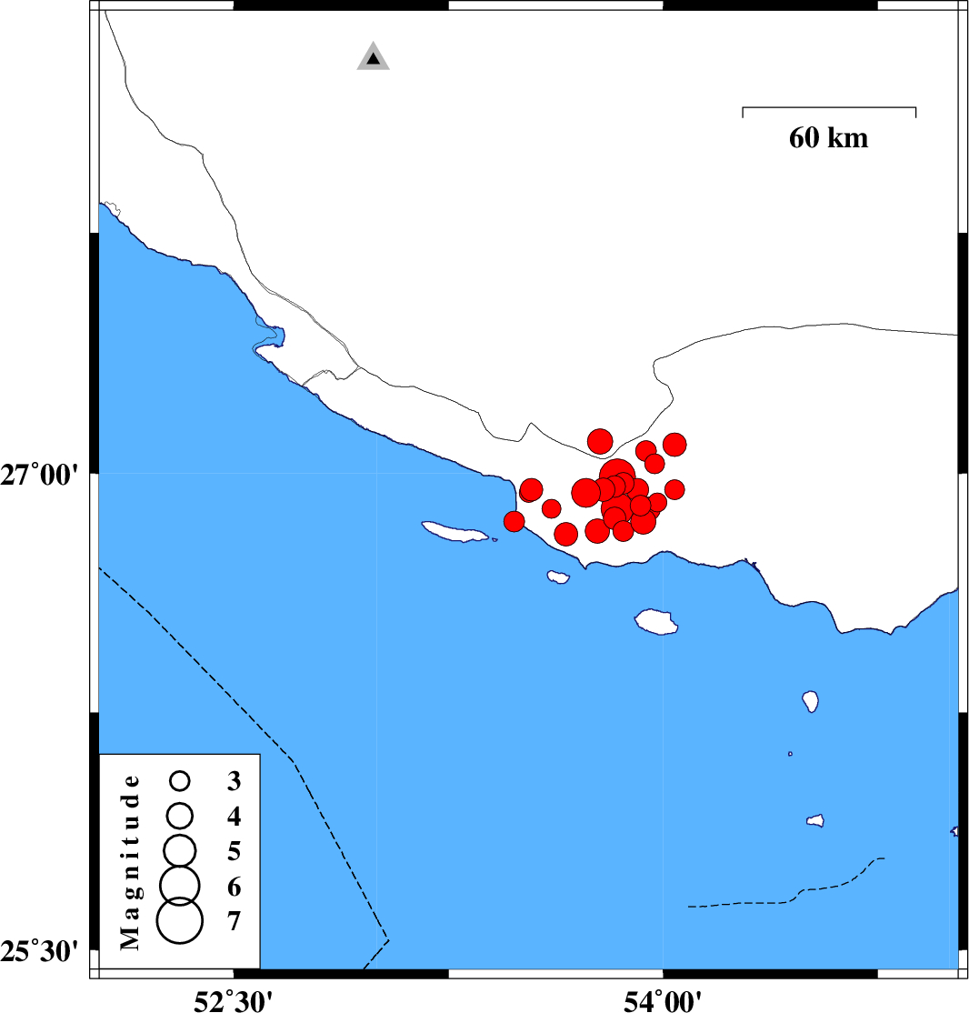 2010/07/24 13:07:38.1 17:37:38.1 26.8553.4814 ML:3.2 Persian Gulf, 62 km South-East of Lamerd