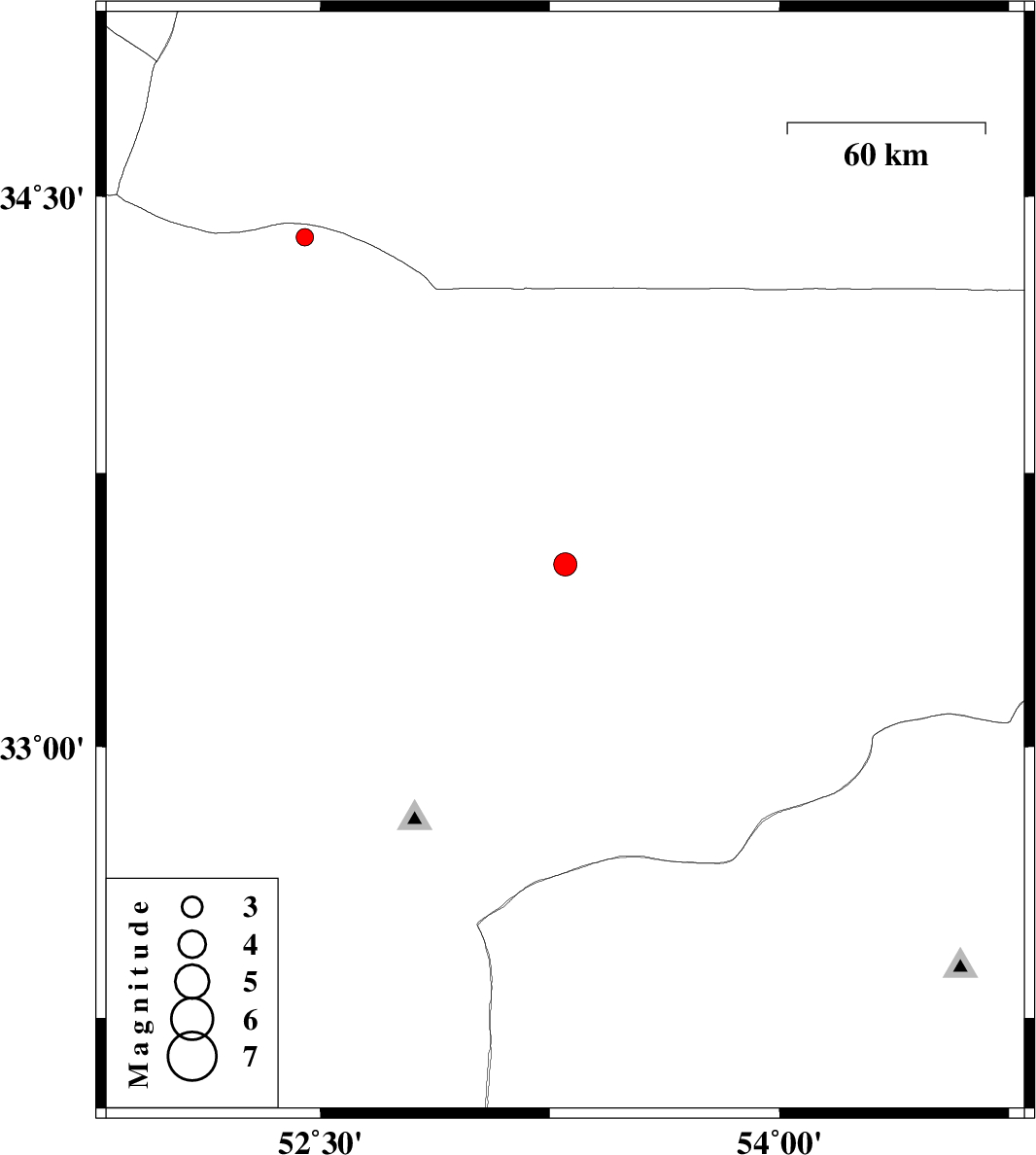 | 2010/07/25 | 05:37:52.6 | 10:07:52.6 | 33.5 | 53.3 | 14 | ML:3.4 | Esfahan Province, 73 km North-East of Nain | ||
